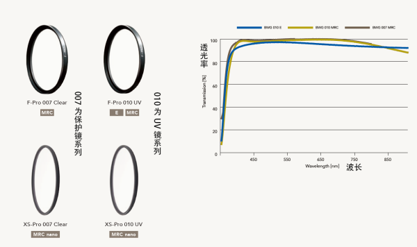 不过跟其他牌子的不一样,B+W的保护镜的定价跟UV是一样的,而往往因为供应的原因,会出现UV镜反而会比保护镜便宜的情况。顺带提一下,B+W的滤镜有两种厚度,分别是厚框的F-Pro和薄框的XS-Pro,虽然说顶尖的纳米镀膜(MRC-Nano)只在XS-Pro产品上才有,一般选择还是遵循24mm这个分界点好了。