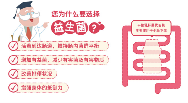 这类乳酸杆菌的特点是,可以抵挡胃液、胆汁等强力杀菌作用的消化液,以活性状态抵达人体肠道内,从而帮助小肠内有益菌增加,提高肠道活性,维持生态平衡,促进新陈代谢。