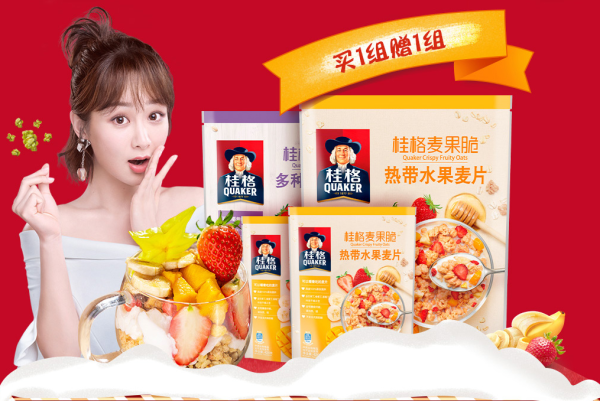桂格除了经典的即食燕麦片和快熟燕麦片外,还研发推出水果坚果麦片,麦果脆等多款产品。不仅在产品上推陈出新,也在代言人上选了当红影视小花杨紫为产品增加品牌效应和色彩。