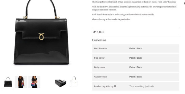 Launer的产品非为两类,一类是开架货品,即可以通过第三方网站,专柜直接购买的标准产品,另一类就是个性化订做产品,可以通过官网预订。
