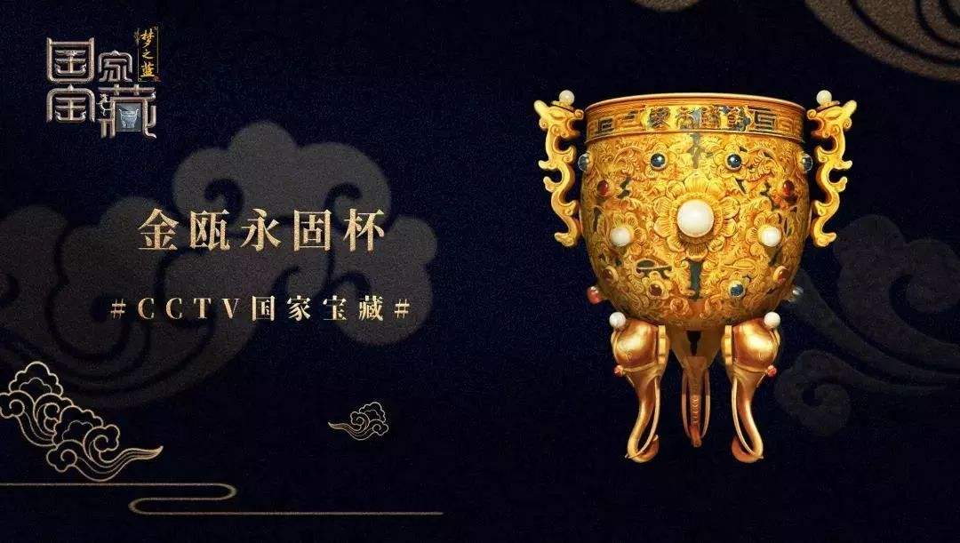 清乾隆金嵌宝金瓯永固杯,是清乾隆时期的故宫金器,此杯共有4只,其中2只金质,1只铜鎏金造办于乾隆初年,另外1只金质造办于嘉庆初年。现藏于北京故宫博物院(1金,嘉庆二年造)、台北故宫博物院(1金,乾隆年造)、伦敦华莱士博物馆(1金、1铜鎏金乾隆年造)。清乾隆金嵌宝金瓯永固杯,高12.5厘米,口径8厘米。 杯金质,鼎式,圆形,直口。口沿錾回纹一周,一面中部錾篆书“金瓯永固”,一面錾“乾隆年制”四字款。外壁满錾宝相花,花蕊以珍珠及红、蓝宝石为主。两侧各有一变形龙耳,龙头上有珠。三足皆为象首式,象耳略小,长牙卷鼻,额顶及双目间亦嵌珠宝。