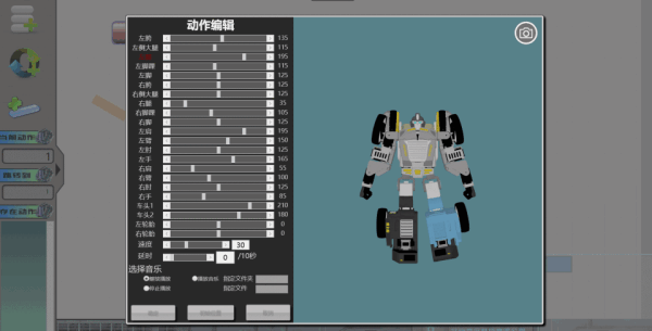 在3D图形编程软件中,你可以随意控制星际特工的所有关节,来创作各种动作指令,除了可以创作动作外,还支持添加音乐。