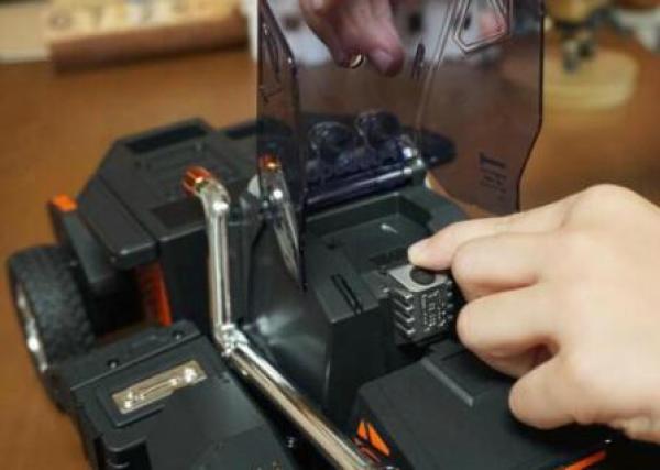 打开机器人的“驾驶舱”舱门,可以看到内部设有语音麦克风,开关按键,充电口、以及Micro USB的数据接口。而至于为什么设计麦克风,是因为乐森星际特工也是一款语音机器人,可以通过语音完成一些操作,例如:车变人,人变车,行走、后退,甚至还可以语音控制其关机。