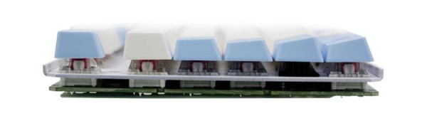 虽然阿米洛键盘的优点是使高纯度PBT材质的原厂高度键帽,用来达到非常饱满的指尖触感,但在按压之后,由于材质过于厚实,会使Cherry轴原本的手感发生一些改变,比如黑、红、银的直通轴会变得比以往更加柔软,而青、茶的段落感和“咔嚓”声也略有降低,所有Cherry轴的手感都相对软糯,声音也会变得很闷。