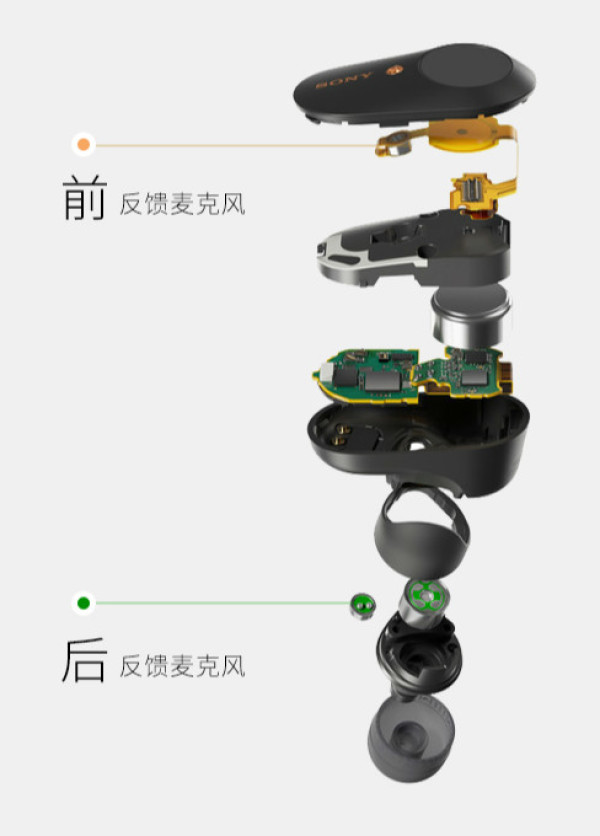 耳机表面配置了前后双反馈麦克风,可灵敏地捕捉周围不同频段的环境噪音