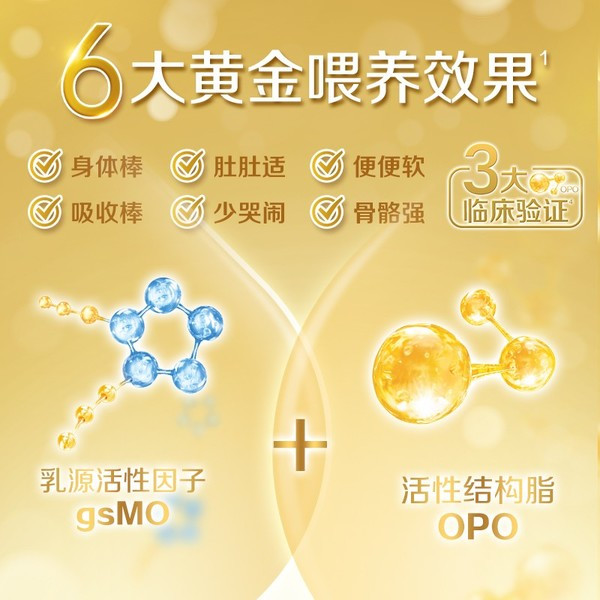 此外还添加了可有助稳定宝宝睡眠及情绪的α-乳清蛋白,可以优化钙吸收、软化便便,降低便秘几率的OPO,和对视力发育有帮助的叶黄素和β-胡萝卜素,宝宝吃得好睡得香,不易上火、不易便秘,肚肚舒服,轻松又开心~