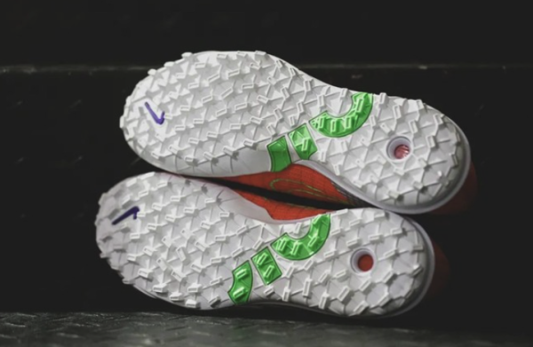 Zoom Mercurial Vapor 14 Pro TF足球鞋使用的碎钉外底是“1/2”新设计,怎么说呢?鞋钉的形状、分布与之前“刺客”Pro TF的略有不同,但是与上一代Elite旗舰级TF的是完全一样的。也可以说这款外底的鞋钉设计,是上一代Superfly Elite TF的沿用。但是,新大底是有技术升级的,比如耐克在后跟位置加入了Air Zoom缓震,补强了Mercurial系列TF一致缺失的环节。