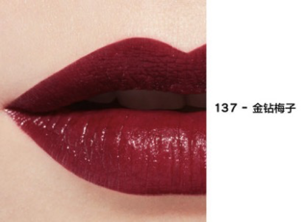 非常正的梅子色,唇膏中带的细闪让它更富魅惑感,显白有气场。