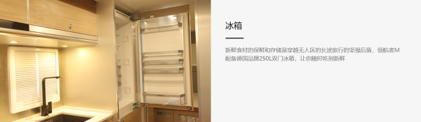 相较于外表的硬汉造型,诺马迪森——“领航者”M越野房车的车厢内部则表现出柔情满满。不但提供了一切可以享受生活的设施,如卧室、客厅、餐厅、厨房以及干湿分离的卫生间,而且全部的用材电器几乎都来自德国进口,甚至连领航者越野房车标配的厨具都是德国双立人的。