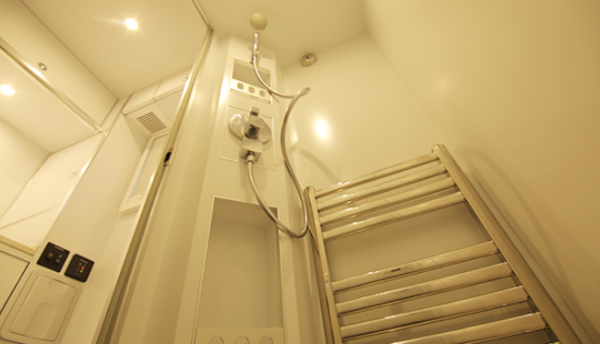 经过厨房区往里走,就是领航者越野房车的卫浴区和卧室区。在整车超过十一米的车身内,领航者越野房车为我们准备了一个干湿分离的卫浴区。