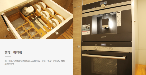 来自欧洲进口的全陶瓷电吸马桶,来自韩国的嵌入式全自动滚筒洗衣机以及来德国的自动恒温混水器、花洒组成了一个功能完善且舒适的卫浴区。在这里无论是日常洗漱,清洁衣物还是舒服的来个热水澡都没有任何问题。