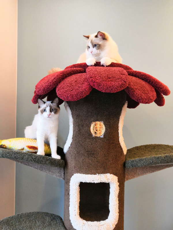 想象一下,一座猫树摆在家里,仿佛猫的天空之城,世外桃源,看着可爱的宠物们爬上爬下的。时而欢脱,时而趴在叶子上面休息,是不是一副温馨的画面呢。