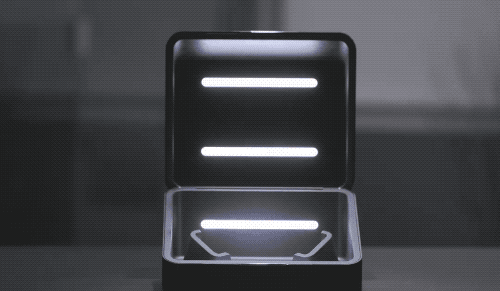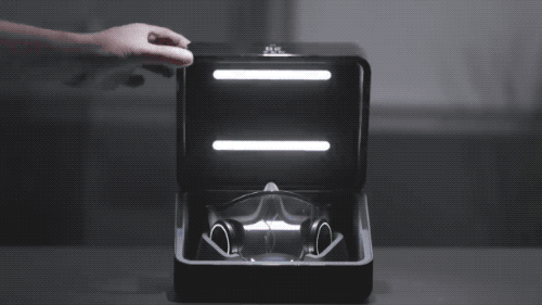 而且它还能重复使用。不仅过滤器可更换,雷蛇还给这个口罩做了个专属的收纳盒,兼具充电和消毒两种功能。只要把口罩放进去就可以自动充电,同时内部的紫外灯也会给它杀菌消毒,保证你第二天戴上它还是干干净净的。
