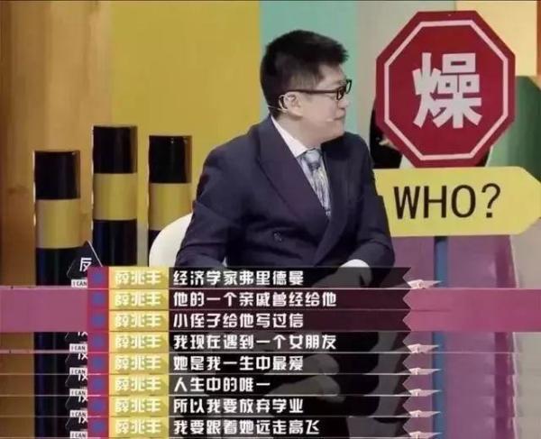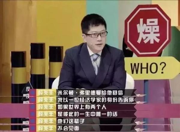 薛兆丰教授的经济学理论在综艺上也很是奏效,《奇葩说》第五季有一段著名的论断来自于辩题“如果得知前人得新欢,有个鸡飞狗跳钮可以给他俩的关系制造一点麻烦,要不要按?”薛教授按照他一贯理性的立场,认为不应该按。