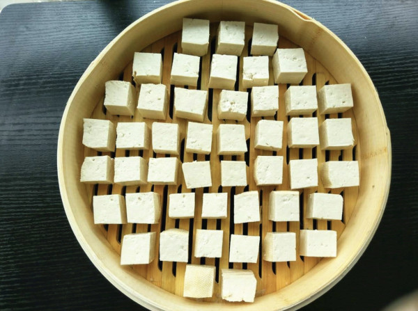 首先将水豆腐切块,然后均匀地摆放在竹条或竹筐上,注意豆腐之间要有一定的空隙,给绒毛留出足够的生长的空间。