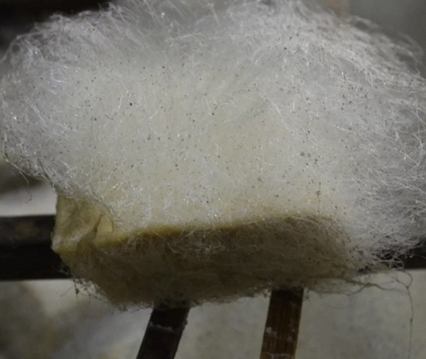 豆腐上除了白色的绒毛,还有有一些黑色的小颗粒,这是孢子,这两样东西都齐了,就代表毛豆腐已经乳化成功,完全成熟,下一步就是开吃!