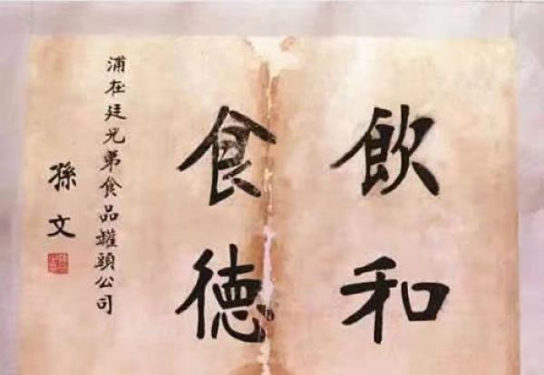 1923年在孙中山倡导的广州农副产品博览会上,获得孙中山先生的亲笔题词“饮和食德”
