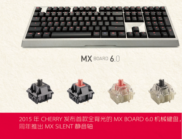 2015年,CHEERY推出了革新之作CHERRY MX6.0,同年为了兼顾办公人群的需求,推出了静音轴。