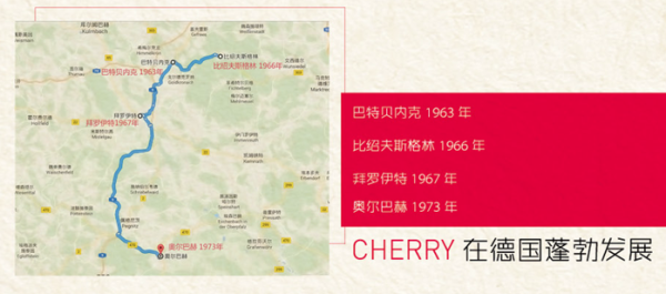 1963年,CHEERY开始回到德国建厂,其中1973年建立的奥尔巴赫工厂至今仍是CHERRY的总部。