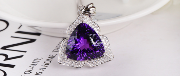 紫水晶通常有与晶体表面平行的长条状色带,深浅差别很大。在宝石加工艺术中,有一种工艺将紫水晶按照特定方式切割后,可以使得到的成品宝石整体呈现相同的颜色。紫水晶中的紫色调经常只在宝石表面出现一薄层,或颜色不均匀,使得其切割变得困难。