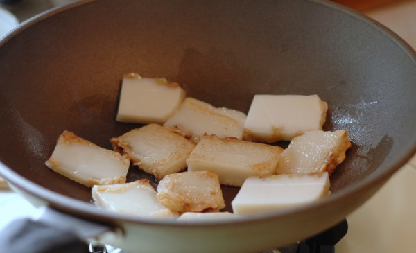 台湾北部的传统年糕是将糯米先磨成米浆放入米袋压干,再切片放入大鼎和花生、红糖或是红豆等材料蒸熟,待熟后再以长竹片拉起放入容器,口感柔软细致。
