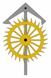擒纵机是机械腕表的心脏,是链接轮系和调节机构之间的能量转换器。工作时,擒纵轮通过卡瓦给振动系统补充能量,同时被卡瓦周期性的挡住和放开。 每个振动周期中只能转过一个齿,以实现等时的间歇传动。 擒纵轮是擒纵机构中的一个组成部分,整个擒纵机构由擒纵轮、擒纵叉及游丝摆轮组成,擒纵机构的典型应用为手表,它实现了动力的缓慢释放。