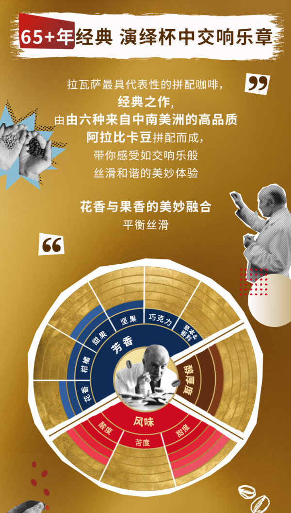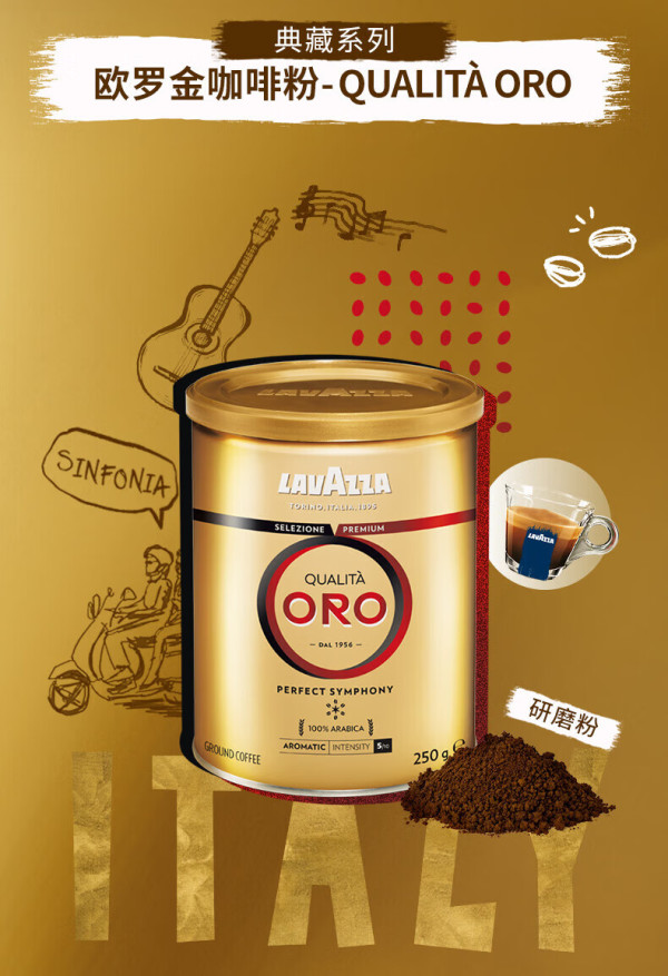 💰购买原因💰一天一杯意式咖啡已经成了生活一部分,家里用的德龙玩具半自动机,平时磨豆还是比较麻烦,看到这款乐维萨(LAVAZZA)欧罗金咖啡粉,250g装,用值友爆料的凑单方式才26元一罐,实在很划算,果断下单来试试。喝完感觉性价比真的太高啦!【价优指数】🌟🌟🌟🌟🌟⭐️包装外观⭐️乐维萨(LAVAZZA)这款欧罗金咖啡粉采用的是类似奶粉罐的铁皮罐装,结实又防潮。外观看起来很高大上,金色的罐身中间用红色字写着“ORO”,这表明是乐维萨家主打品质与高端的咖啡粉。罐盖也是金色的,塑料很软,盖起来密封又方便,给这种好看又实用的设计点赞👍【外观指数】🌟🌟🌟🌟☕️产品品质☕️打开密封的罐盖,我就闻到一股浓浓的咖啡香气,这款咖啡粉采用的是百分之百阿拉比卡咖啡豆制作的,中度烘焙,所以闻到的香气不会太焦,偏可可类。我用手抓了一小撮咖啡粉,发现研磨非常均匀,研磨的粗细程度也是适合做意式浓缩的细度。【品质指数】🌟🌟🌟🌟☕️味道口感☕️咖啡粉最终好不好,当然要喝才知道,我赶紧把玩具机打开,用双倍粉碗装了两勺这款咖啡粉。可以看到萃取出来的咖啡液crema还是比较丰富,喝一口,就明显感觉到坚果、可可、巧克力的香气冲入鼻腔,香极了。味道则是醇厚而有酸度,口感很均衡,没有那些廉价咖啡豆那种烟焦味。我个人非常喜欢。【味道指数】🌟🌟🌟🌟👍总评花25元就能买到这样一罐包装好看,味道优秀的咖啡粉,还省去了我磨豆的麻烦,真的非常有性价比。强烈推荐。适合人群:家里有意式半自动机,不想磨豆,就买这款LAVAZZA欧罗金牌咖啡粉作为咖啡口粮吧!